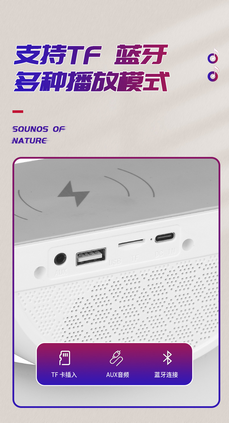 Cross-Border Wireless Charging Bedside Lamp Atmosphere Lamp Multi-Functional Speaker Smart Bright Nightlight Bluetooth Audio Desktop Light