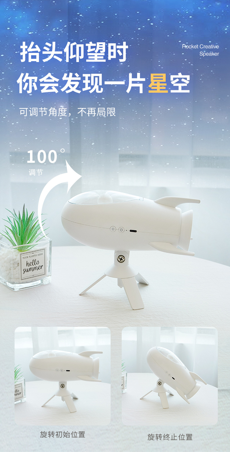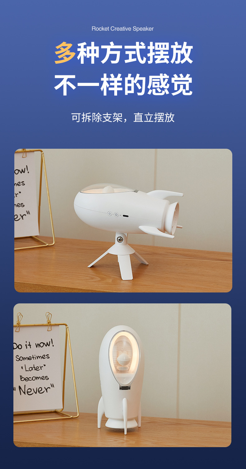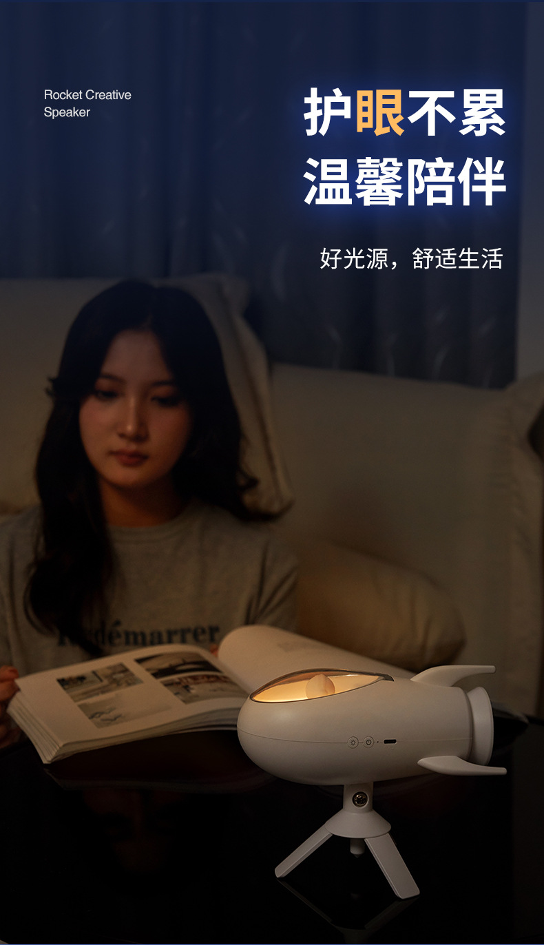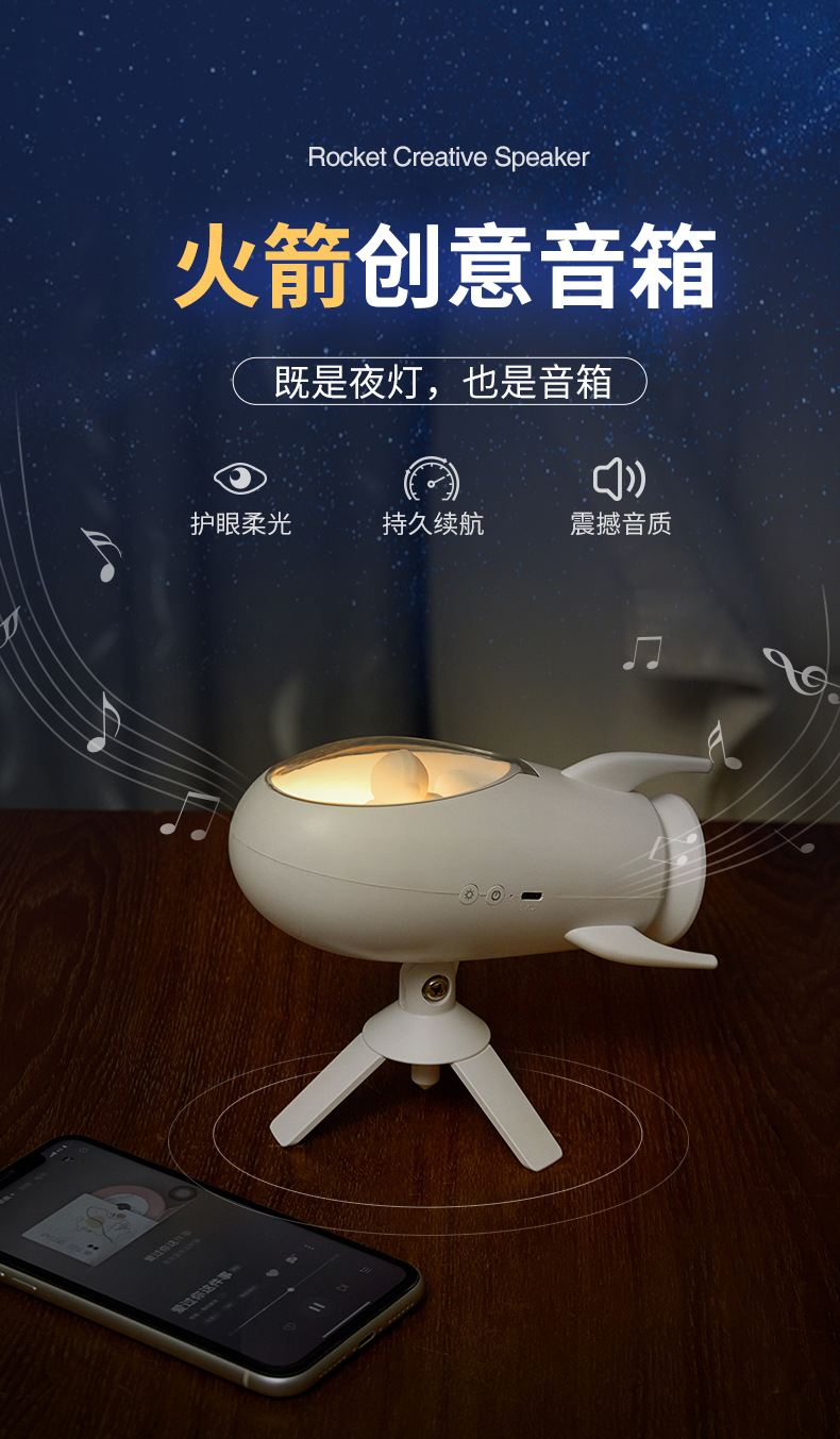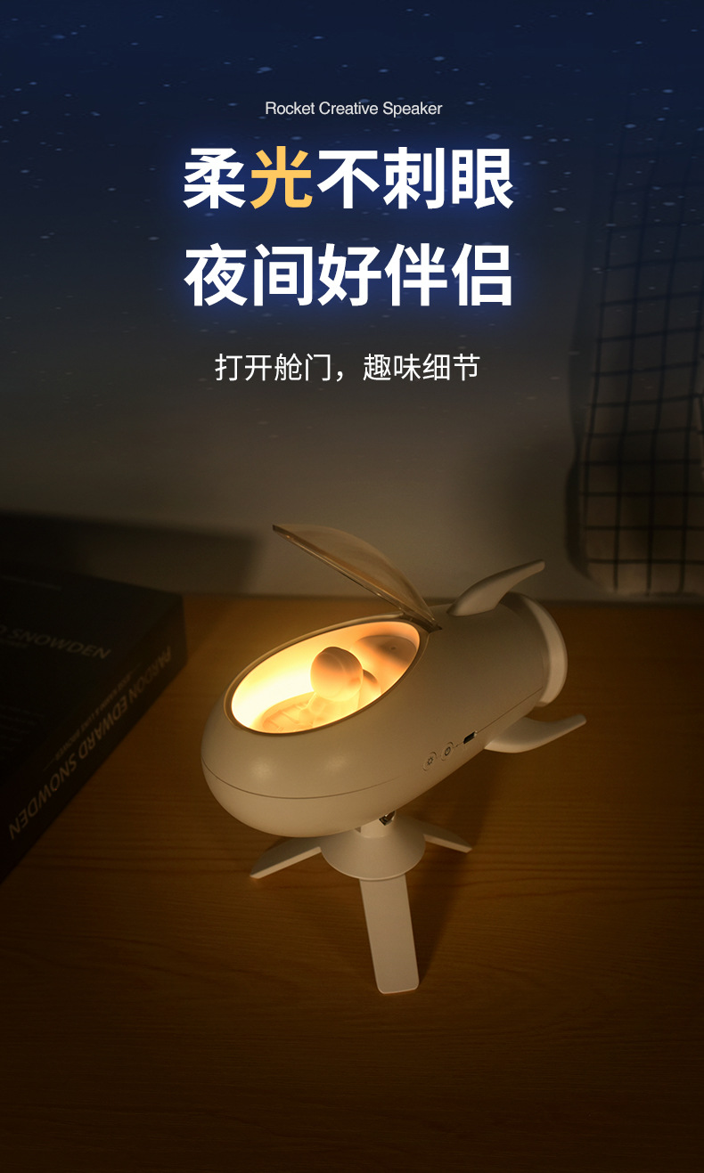 New Rocket Bluetooth Speaker Creative Small Night Light Home Bedroom Bed With Soft Light Atmosphere Light Holiday Gift
