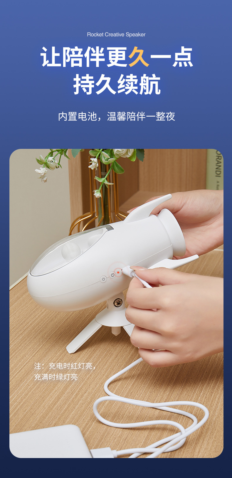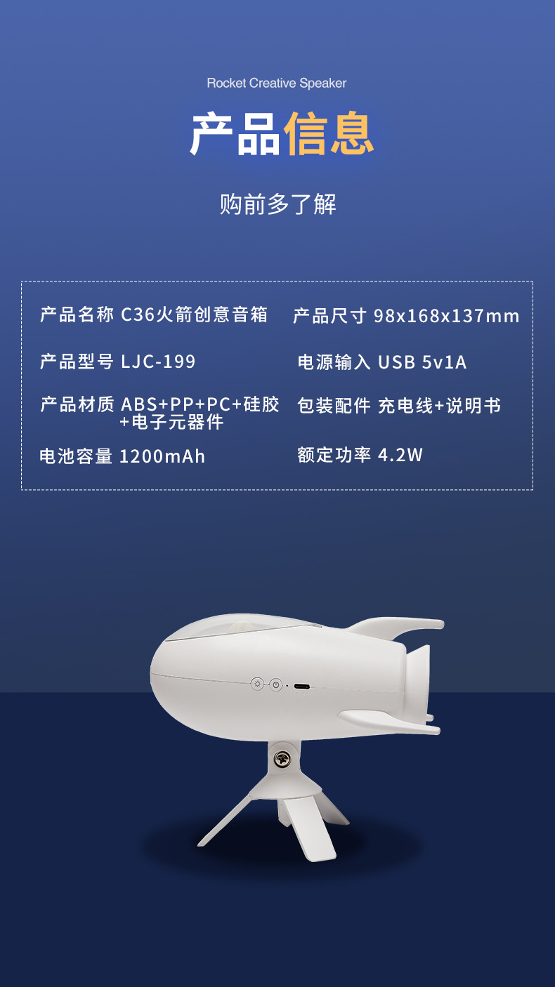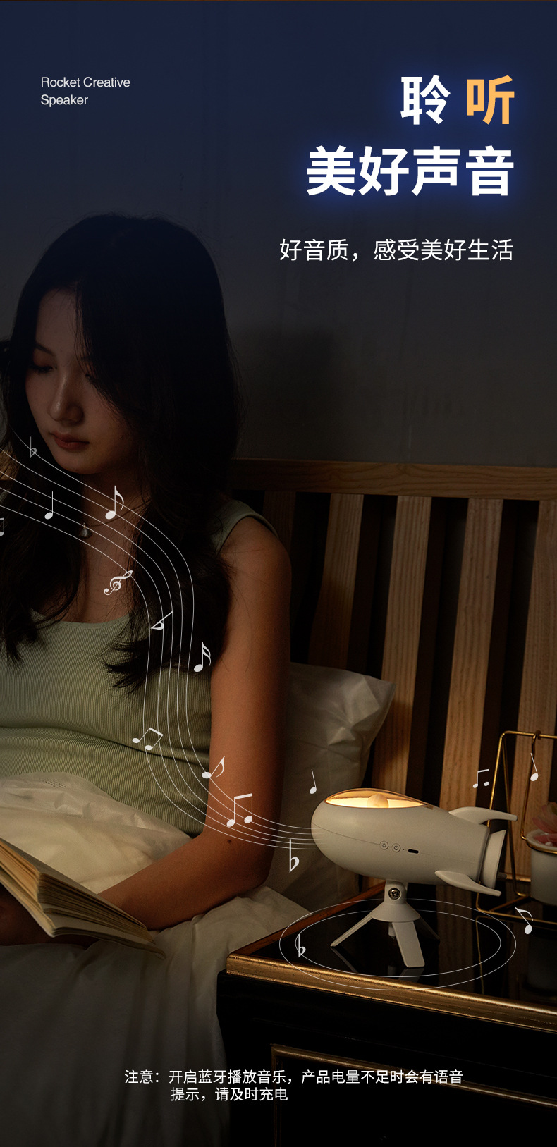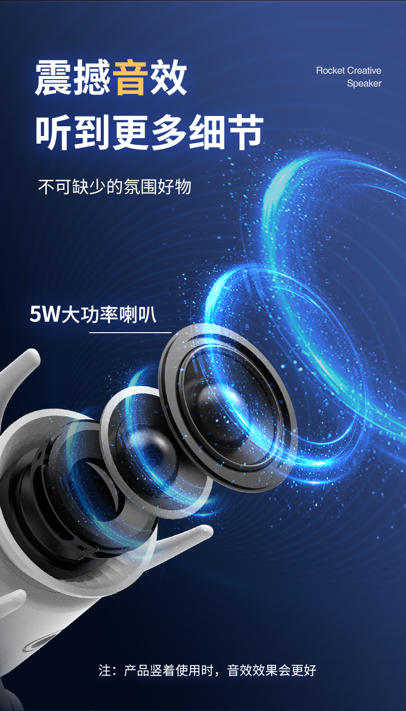 New Rocket Bluetooth Speaker Creative Small Night Light Home Bedroom Bed With Soft Light Atmosphere Light Holiday Gift
